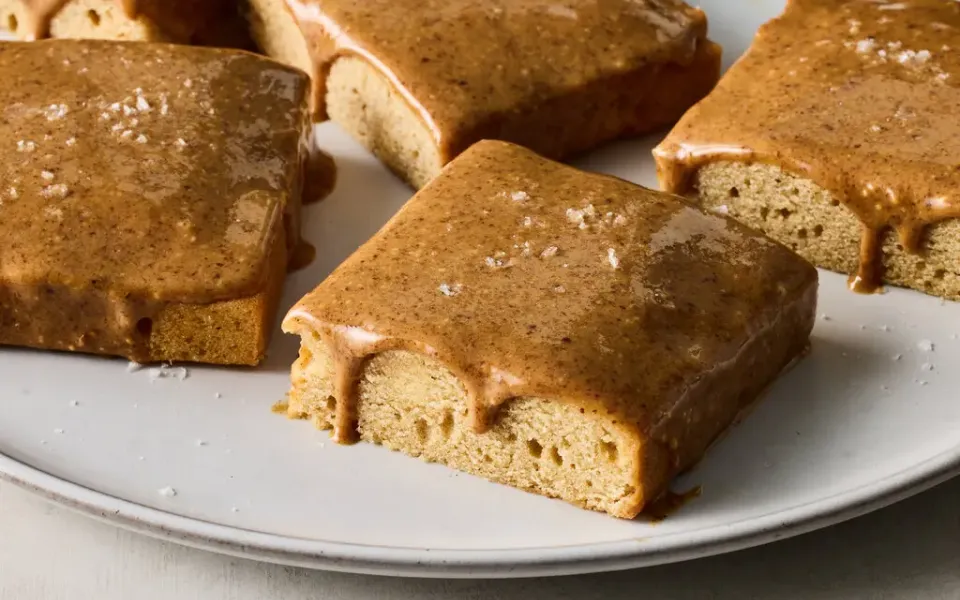 Afbeelding: Amlou als topping op een Amerikaans blondie. Bron: New York Times, september 2024.