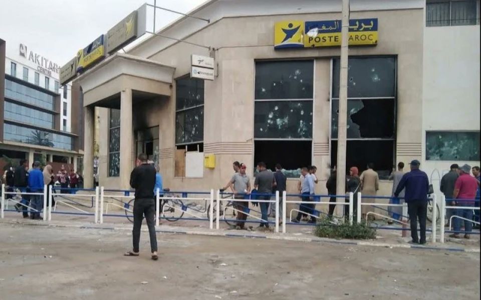 Afbeelding: beschadigd postkantoor in Inezgane. Bron: social media.