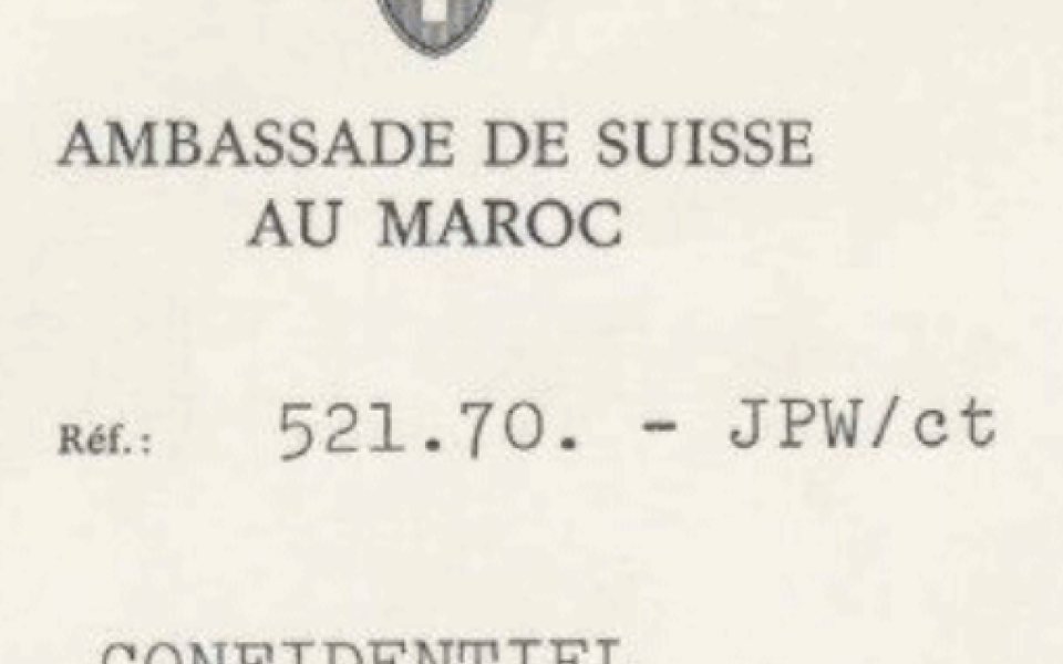 "Ik heb diverse gesprekken met mijn landgenoten gevoerd over het investeringsklimaat, zowel in Rabat als tijdens mijn recente zakenreis naar Fez, Meknes, Agadir en Marrakesh, en tijdens de laatste maandelijkse lunch van Zwitserse zakenlieden in Casablanca. Consul Monney van zijn kant verzamelde interessante, zij het niet bemoedigende, informatie tijdens de laatste periodieke besloten bijeenkomst van West-Europese consuls in Casablanca.