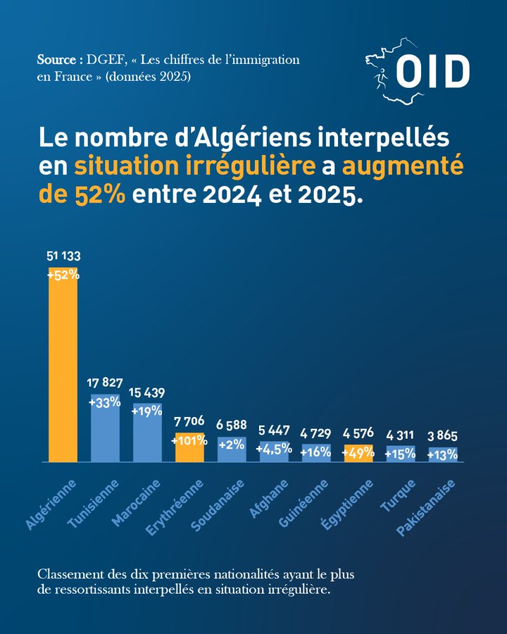 Algerijnse migranten gebruiken Spanje als transitland om familie in Frankrijk te bereiken. Volgens het Franse Observatoire de l’Immigration is het aantal illegalen uit Algerije het hoogste op dit moment. Daarvan hebben 51.133 een bevel gekregen om het land te verlaten. Een stijging van 52% in twee jaar tijd. Maar ze kunnen niet terug door moeizame diplomatieke betrekkingen met het militaire regime in Algiers.