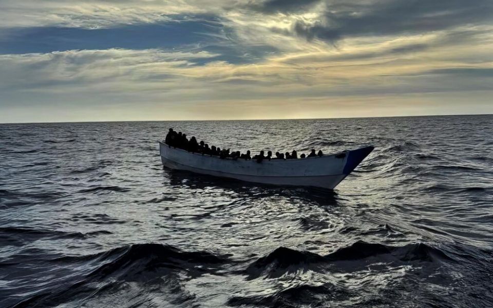 Afbeelding: migrantenboot op zee. Bron: Radio Insular, Canarische Eilanden.