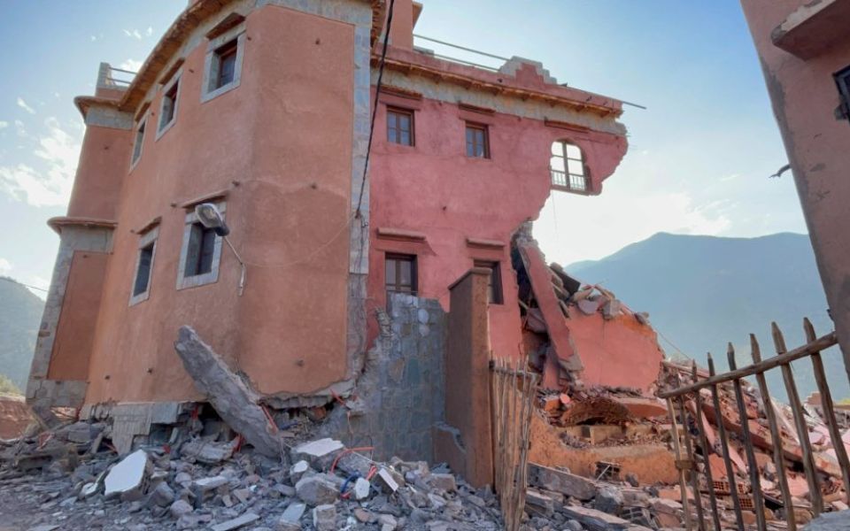 Afbeelding: een beschadigd huis in het door de aardbeving getroffen gebied in 2023. Bron: Aljamaa.net.