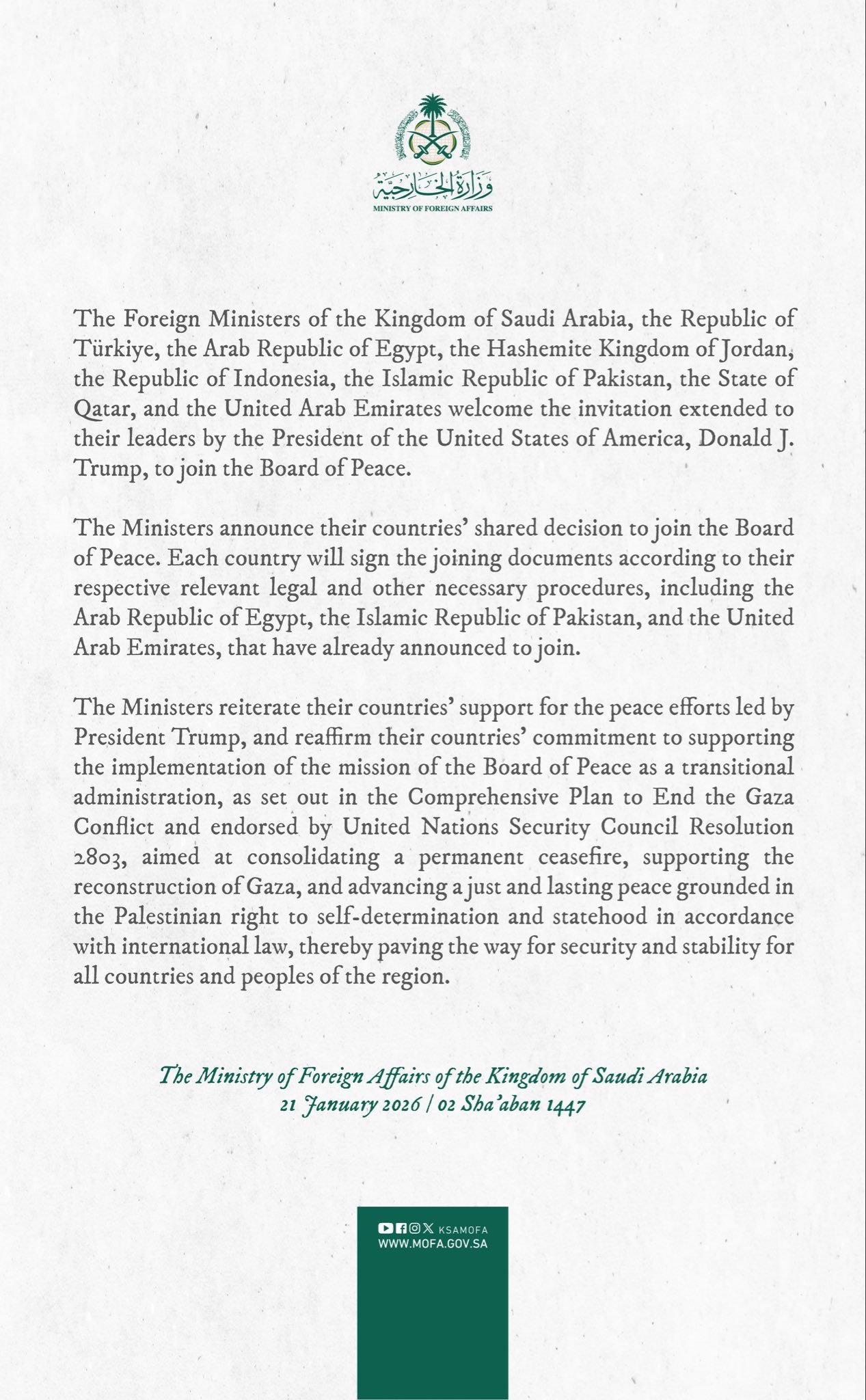 Update: 21 januari. Naast Marokko hebben ook Egypte, de Emiraten, Jordanië, Indonesië, Pakistan, Qatar, Saoedi-Arabië en Türkiye de uitnodiging van Donald Trump geaccepteerd om deel te nemen aan de vredesraad voor Gaza. Dat heeft het Ministerie van Buitenlandse Zaken van Saoedi-Arabië in een gezamenlijke verklaring bekendgemaakt.