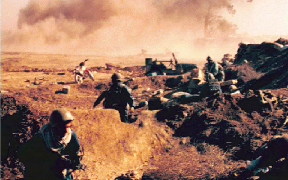 Afbeelding: oorlogsfront aan de grens tussen Irak en Iran 1980-1988.