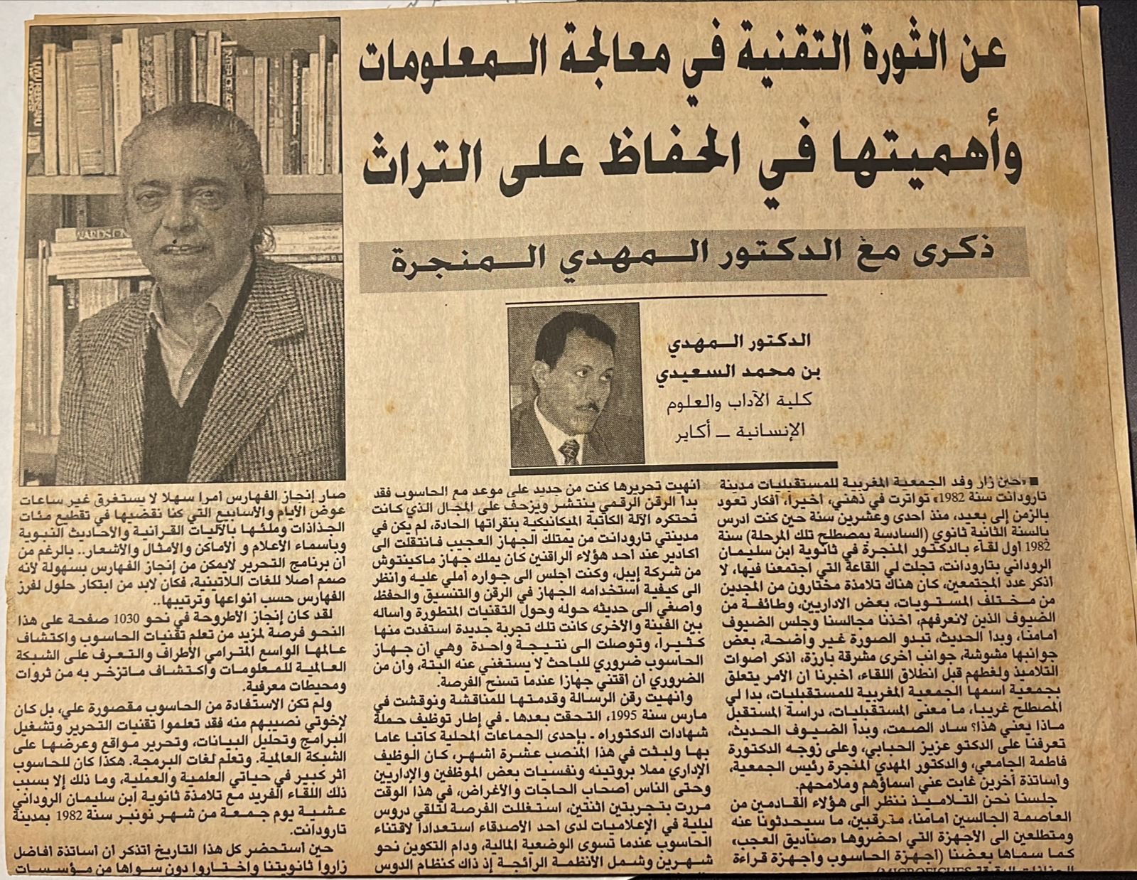 In 1982 bezocht wetenschapper Mahdi Elmandjra (1933-2014) een kleine school in Taroudant om een lezing te geven over techniek en wetenschap. Hij nam een Apple Macintoch computer mee om het belang van de informatieverwerking uit te leggen. In die tijd had bijna niemand in Marokko over computers gehoord. Niemand wist van de capaciteit van computers om grote hoeveelheden informatie te verwerken, op te slaan en snel terug te vinden.
