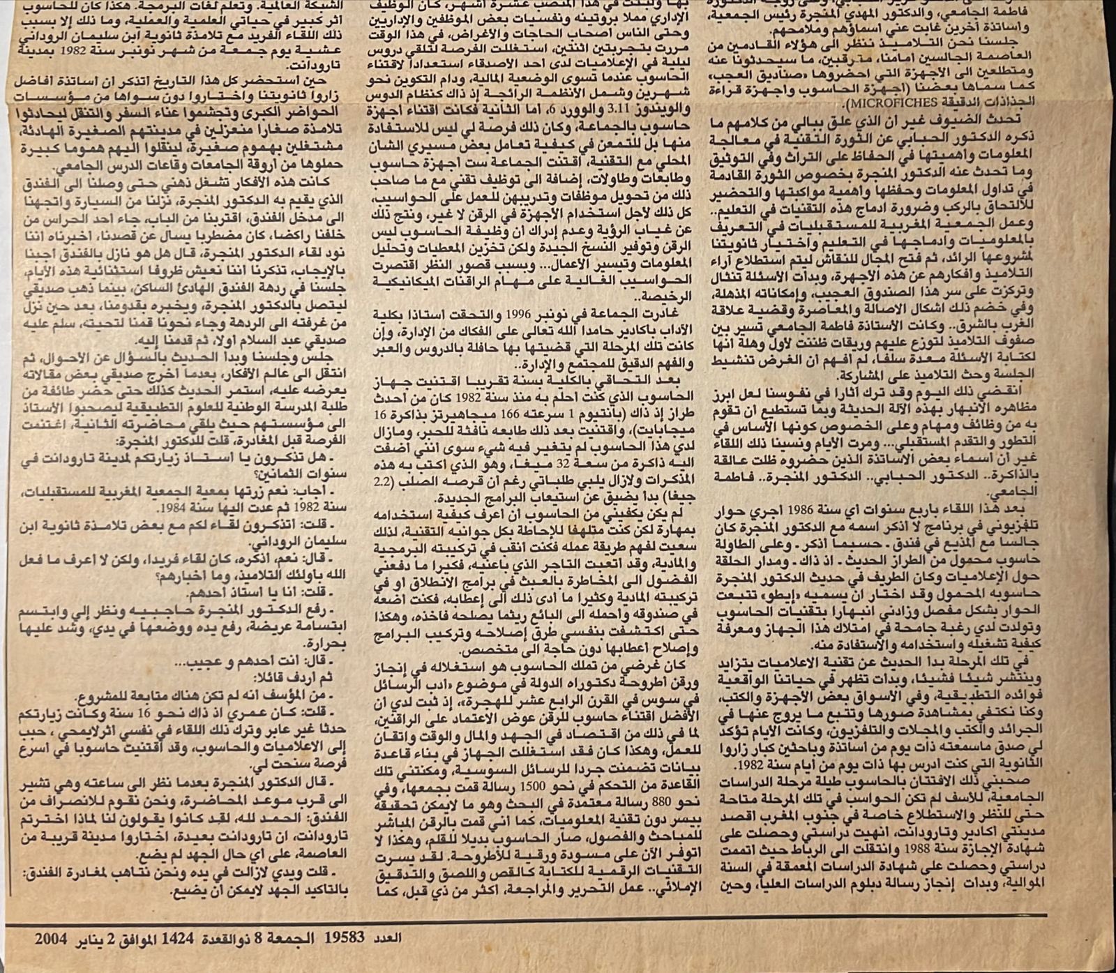 Een van de aanwezige leerlingen was de 16 jaar oude Elmahdi Saidi. In dit artikel (deel een en deel twee) uit 2004 kijkt hij twintig jaar terug en beschrijft de indruk die de Apple machine op hem heeft gemaakt. Zo schrijft hij dat zijn promotieonderzoek naar niet eerder gepubliceerde 19de -eeuwse documenten uit de regio mede was bepaald door de toen nieuwe en snelle techniek van Apple. Hij kon 2.380 documenten archiveren en foutloos terugvinden. Onbegonnen werk zonder die eerste computer.