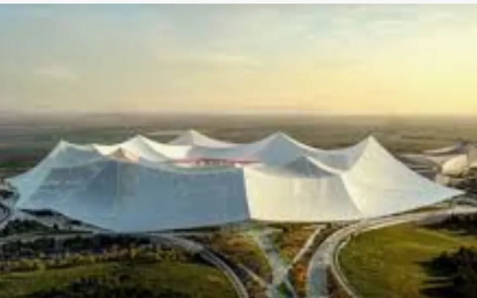 Een van de ontwerpen van het stadion komt van het lokale architectenbureau Oualalou. Het stadion stelt een gigantische tent voor waar straks 113.000 toeschouwers kunnen zitten. Dat wordt volgens verschillende bronnen het grootste stadion van Afrika en het tweede in de wereld.