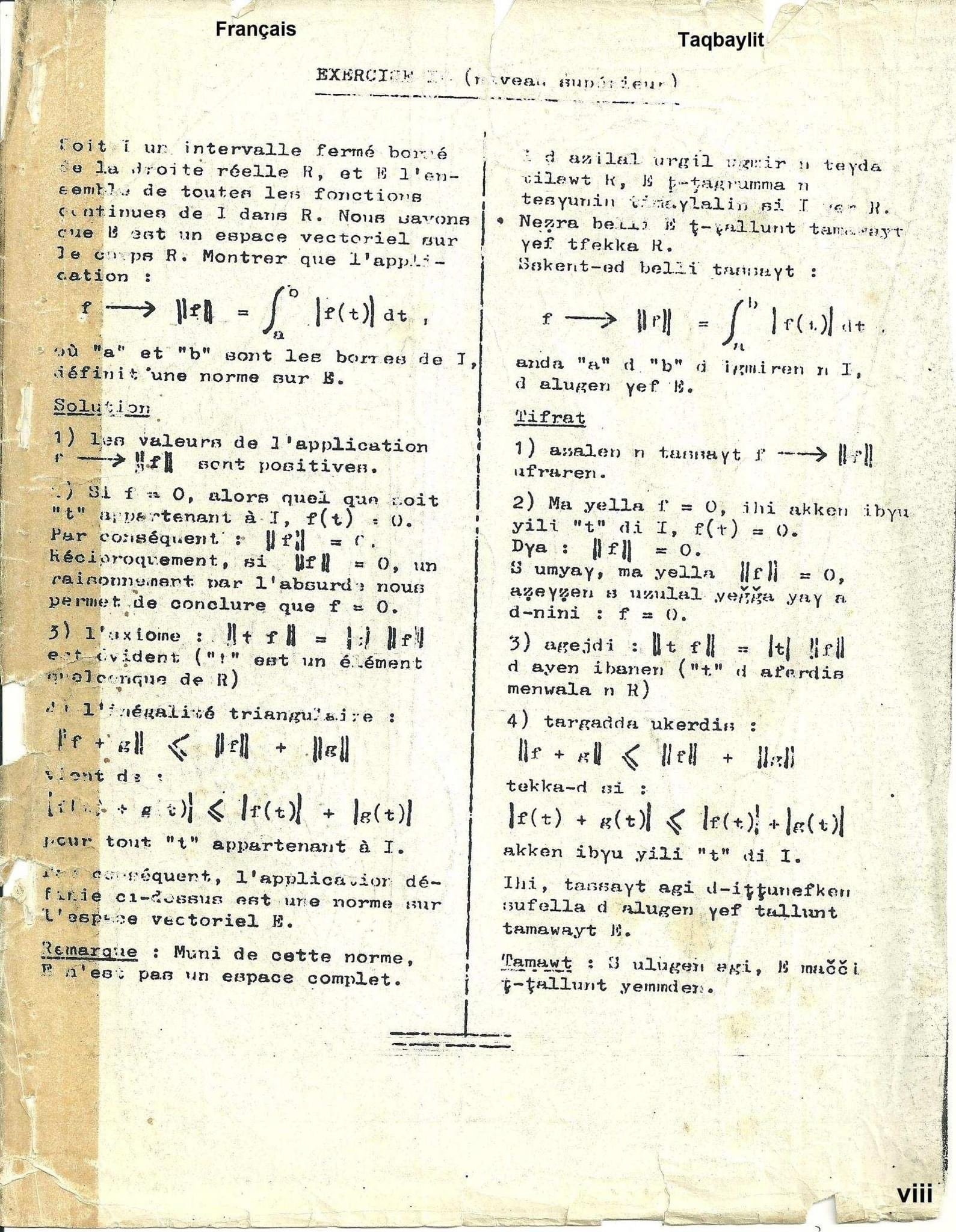 1. Werkwoord: afes, betekent vluchten, drukken, introduceren, in de grond slaan. Voorbeeld: Yufes agatu g-wakal = hij heeft een paal in grond geslagen. Ufes-as kra g jjib = hij heeft iets in zijn zak gestopt. Het zelfstandige naamwoord is afas.