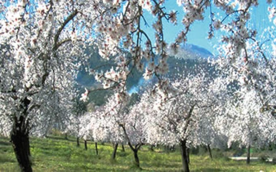 Afbeelding: boomgaard met amandel in het voorjaar in de buurt van Tafraout.